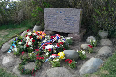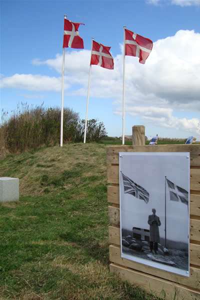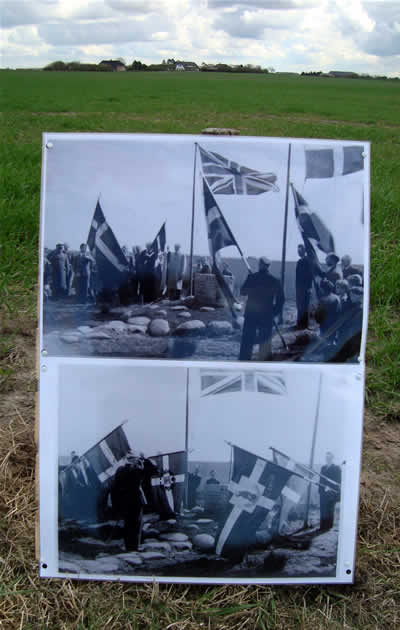 On display at the crash site were large photographs from the memorial stone unveiling ceremony marking the fifth year of Denmark's Liberation on the 5th May 1950: