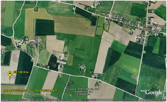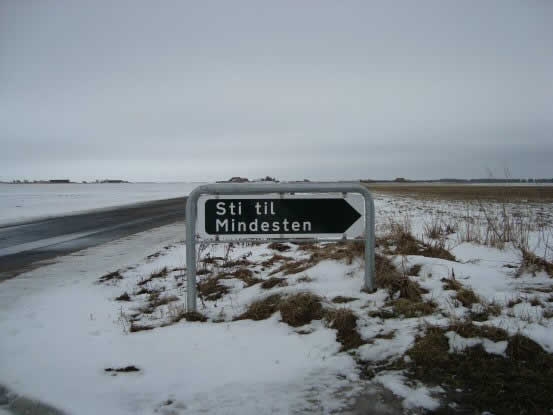 The crash site is located near the village of Stadil, Denmark. This photo of the sign to the site on the road Stadiløvej was taken in March 2010 by Mrs G. Møllehøj. (Sti til Mindesten = Path to Memorial Stone)