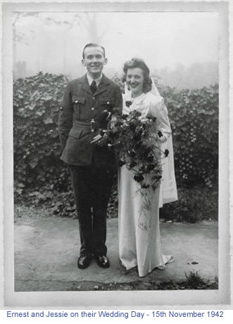 Left to Right - Roy Thirkettle (Ernie's brother), Ernest Thirkettle (Ernie's father), Jean Thirkettle (Ernie's sister), Ernie, Jessie, Catherine "Kitty" Jones (Jessie's schoolfriend), Mrs Ivy Lawless (Ernie's mother), Mrs Annie Ellis (Jessie's mother), Mr Jones (Catherine's father). (Ernie's parents had divorced and had both remarried.) From Amanda Shepherd (Jessie’s daughter): Dear Poul, Peter and Victor, My mother married Ernie Thirkettle on this day - 15 November - in 1942. She was 19 and he was 22. We can only imagine how terrible it was for her to suffer his loss so soon after they married - and how much worse too that she had to wait so long to know his fate. She met and married my father after the war, had my brother in 1953 and me in 1956. She lost touch with Ernie's family, and with Mrs Lee, who was the only crew member family she was in touch with after they went missing. She has read your emails, and has tried to answer your questions, but has very little info about Ernie's time in the RAF - perhaps understandably. Below is her email to you. Poul, thank you for your very kind offer of helping us if we come to Denmark. Peter, thank you for taking the time to write such a very detailed email. Peter and Victor, thank you for your invitation to Stadil in 2008.I would be more than happy to bring my mother if she decides that she could make the journey (she has quite bad arthritis and long journeys are difficult). We will talk further about it. With warmest wishes and thank you again for your kindness -Amanda (Shepherd)